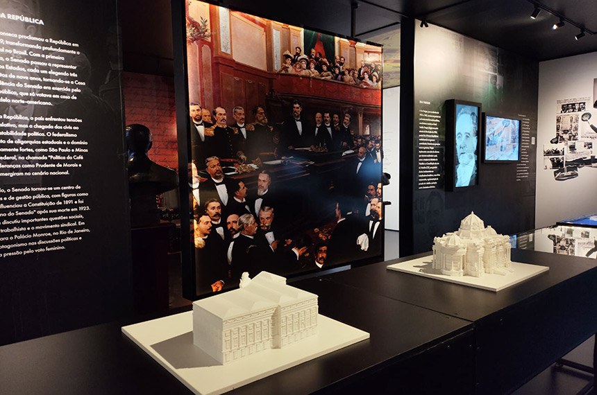 Já no eixo da Ditadura, os visitantes são impactados com os retratos dos rostos das pessoas desaparecidas que ainda hoje não foram localizadas pelos familiares. E na Redemocratização, as maquetes dos palácios do Senado — Conde dos Arcos, Monroe e Congresso Nacional — transportam os visitantes para uma viagem pela história do Senado e do Brasil.