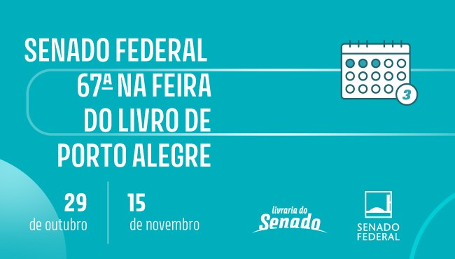 O Senado Federal estará presente na 67ª edição da Feira do Livro de Porto Alegre,entre os dias 29 de outubro e 15 de novembro, na Praça da Alfândega, no Centro Histórico da capital gaúcha. Esta é a primeira exposição literária em que o Senado participa desde 2019.