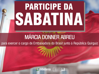 Sabatina Sabatina de Márcia Donner Abreu, indicada para exercer o cargo de Embaixadora do Brasil junto à República do Cazaquistão Previous Next