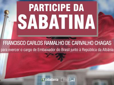 Sabatina Sabatina de Francisco Carlos Ramalho de Carvalho Chagas, indicado para exercer o cargo de Embaixador do Brasil junto à República da Albânia Previous Next
