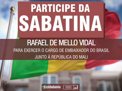 Sabatina Sabatina de Rafael de Mello Vidal, indicado para exercer o cargo de Embaixador do Brasil junto à República do Mali Previous Next