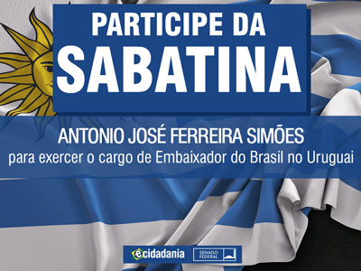 Sabatina Sabatina de Antonio José Ferreira Simões, indicado para exercer o cargo de Embaixador do Brasil na República Oriental do Uruguai Previous Next