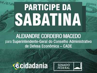 Sabatina Sabatina de Alexandre Cordeiro Macedo, indicado para exercer o cargo de Superintendente-Geral do Conselho Administrativo de Defesa Econômica – CADE Previous Next