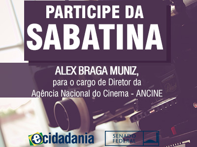 Sabatina Sabatina de Alex Braga Muniz, indicado ao cargo de Diretor da Agência Nacional do Cinema - ANCINE Previous Next
