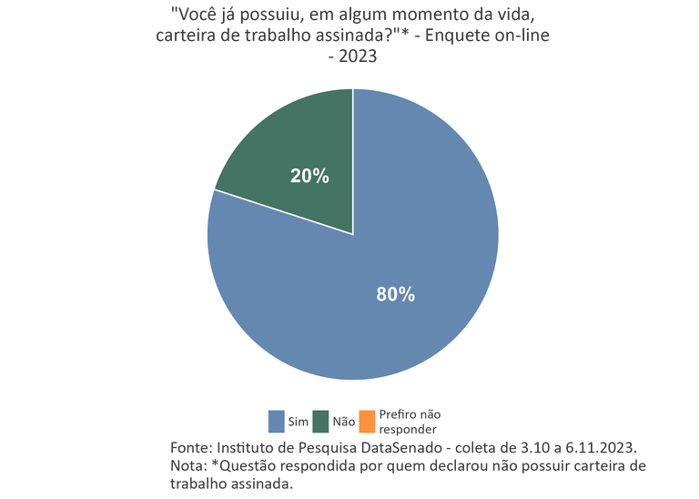 Dentre os que responderam não possuir carteira assinada, 80% afirmam já ter tido carteira assinada em algum momento da vida.