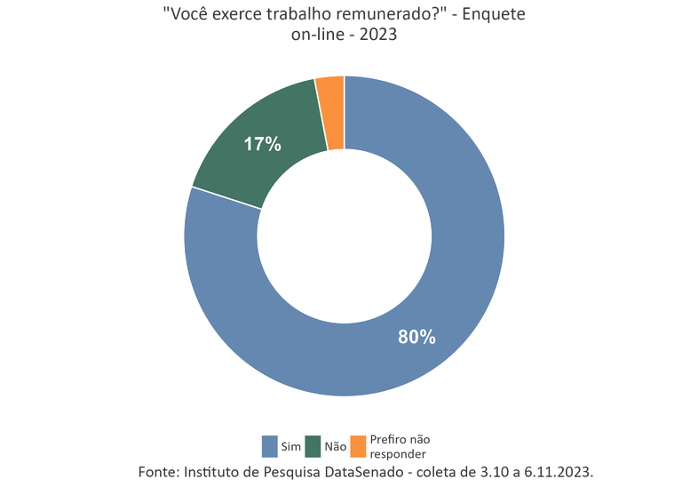 A enquete contou com 121 participantes e ficou disponível no Portal do DataSenado de 3 de outubro a 6 de novembro de 2023.