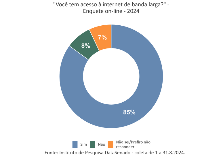 Para avaliar a opinião dos participantes sobre o tema, primeiramente investigou-se seu nível de conectividade, em que observou-se que 85% dos respondentes declaram ter acesso à internet banda larga.