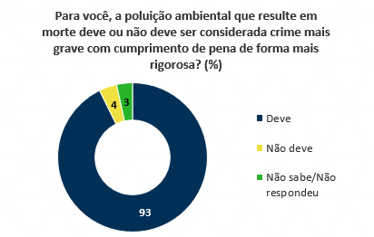 Os respondentes também se posicionaram a favor de tornar crime hediondo (crime mais grave com cumprimento de pena de forma mais rigorosa) a poluição ambiental que resulte em morte.