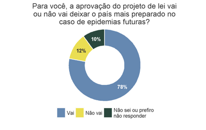 A proposta é considerada muito importante para 86% dos respondentes. Além disso, 78% acham o Brasil vai estar mais preparado para epidemiais futuras se ela fora aprovada.