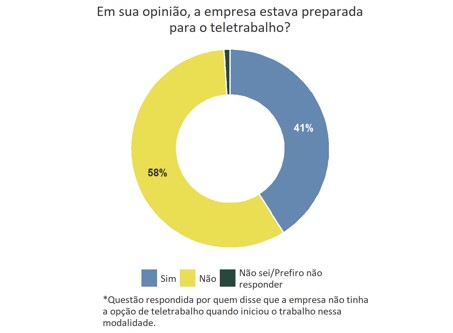 Nesse grupo, mais da metade (58%) afirma que a empresa ou organização empregadora não estava preparada para esse modelo laboral.
