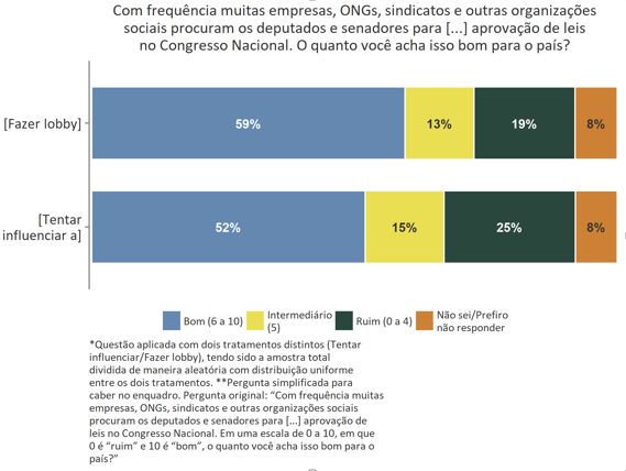 ‘Fazer lobby’ x ‘Tentar influenciar’: Percepção sobre o quanto a atividade é boa ou ruim para o país não varia significativamente conforme a expressão utilizada para referência à prática