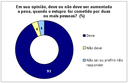 A enquete mostra também que mais de 90% dos internautas defendem prisão para quem publicar imagens de estupro, além do aumento de pena para autores do crime de estupro cometido por duas ou mais pessoas.
