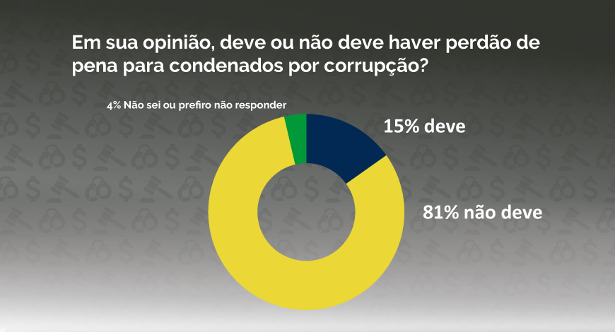 Brasileiros acham que não deve haver perdão de pena para condenados por crimes de corrupção