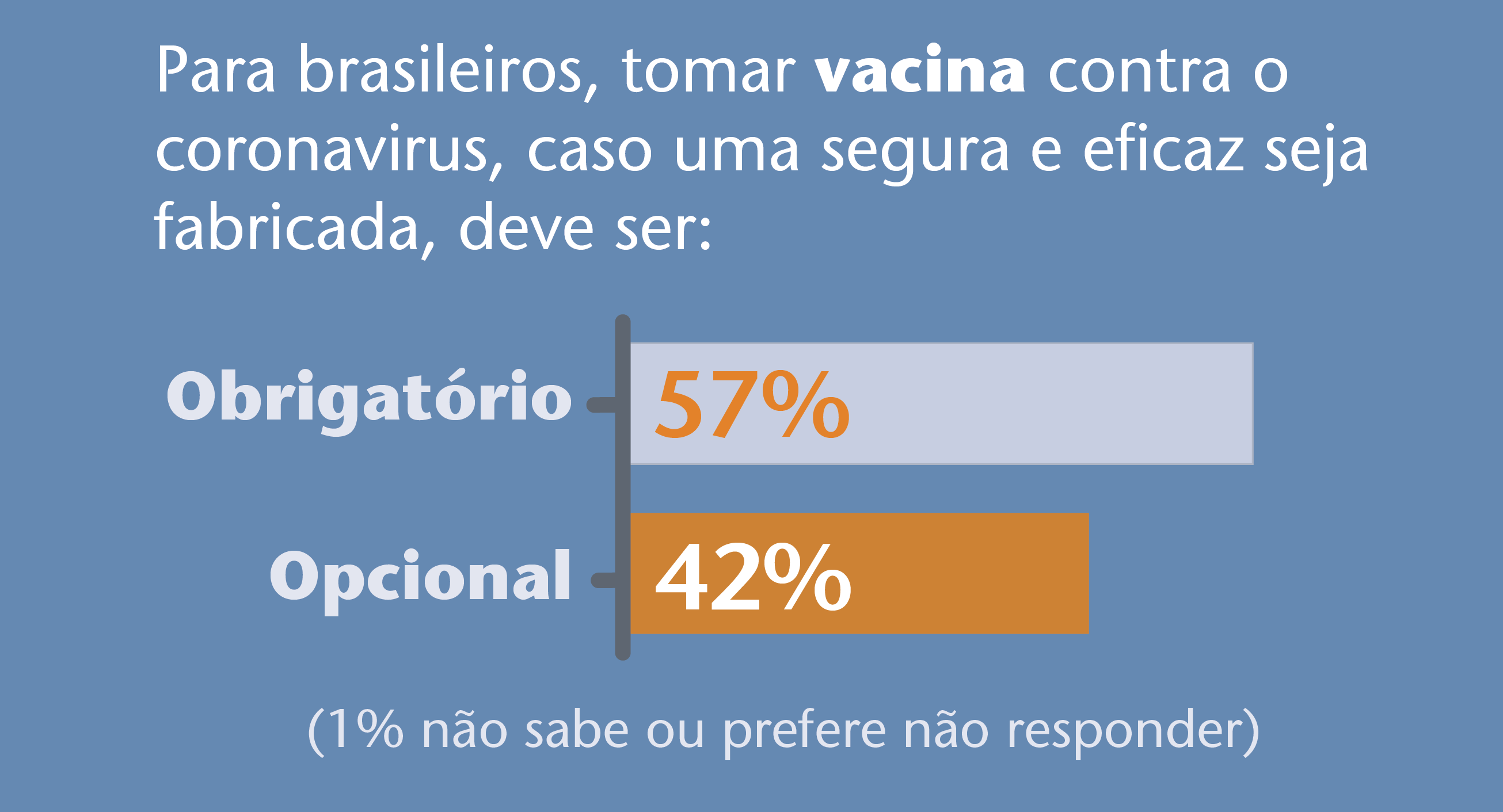 Data Senado > Resultados Publicações por Ano: 2020 10/12/2020 Para maioria, vacina contra o coronavírus deve ser obrigatória O DataSenado realizou pesquisa nacional para avaliar a opinião de brasileiros sobre a aquisição de vacinas pelo Ministério da Saúde e a obrigatoriedade ou não do cidadão se vacinar. Temas: Destaque Todas Covid-19 09/12/2020 Apesar da pandemia, oito em cada dez brasileiros votaram em eleições municipais Em pesquisa nacional realizada pelo DataSenado, a maioria dos brasileiros afirma que votou nas eleições municipais e se sentiu segura em relação ao coronavírus na hora de votar. Temas: Destaque Todas Eleições Covid-19 04/12/2020 Maioria concorda com a criação do 14o salário emergencial para segurados e dependentes do RGPS em razão da pandemia Resultados de enquete online realizada pelo DataSenado mostram que maioria dos respondentes apoia o PL 3.657/2020, que institui 14o salário emergencial para segurados e dependentes do Regime Geral de Previdência Social. Temas: Destaque Todas Covid-19 18/11/2020 Maioria apoia proposta que impede cobrança de quaisquer tributos sobre livros, jornais e periódicos Tema de enquete online realizada pelo Instituto DataSenado em outubro, a PEC nº 31/2020 zera a carga tributária sobre livros, jornais e periódicos, tanto impressos quanto em formato eletrônico. Temas: Educacao Economia Todas Cultura Legislação 26/10/2020 Maioria dos respondentes apoia proposta que estende período de recebimento do seguro-desemprego Enquete online realizada pelo Instituto DataSenado avaliou opinião de internautas sobre o PL 4376/2020, que prorroga por dois meses o pagamento de seguro-desemprego. Temas: Todas Covid-19 Administração Pública 06/10/2020 Desemprego na pandemia Para subsidiar o trabalho parlamentar e auxiliar na definição de prioridades, o Instituto DataSenado realiza rodadas frequentes de pesquisas de opinião. Na rodada de setembro, os dados coletados mostram o impacto da pandemia de Covid-19 sobre a taxa de desemprego no país. Temas: Destaque Trabalho Todas Covid-19 01/10/2020 Pandemia aumenta o número de brasileiros com experiência em teletrabalho O Instituto DataSenado realizou pesquisa nacional para ouvir a opinião dos brasileiros sobre teletrabalho e propostas de lei para regulamentar esse novo formato de emprego. Temas: Destaque Trabalho Todas 01/10/2020 Brasileiros apoiam custeio da vacina contra o Covid-19 com dinheiro economizado pelo governo com teletrabalho O Instituto DataSenado realizou pesquisa nacional para avaliar a opinião dos brasileiros sobre o PL 4.006/2020, de autoria da senadora Rose de Freitas (Podemos-ES). Resultados mostram que maioria é a favor da proposta. Temas: Destaque Trabalho Todas Covid-19 « 1 2 3 4 5 »