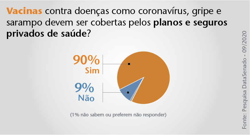 O Instituto DataSenado realizou enquete online para avaliar a opinião de internautas sobre o PL 3987/2020, que torna obrigatória a cobertura, pelos planos de saúde, da vacinação contra doenças como coronavírus, gripe e sarampo.