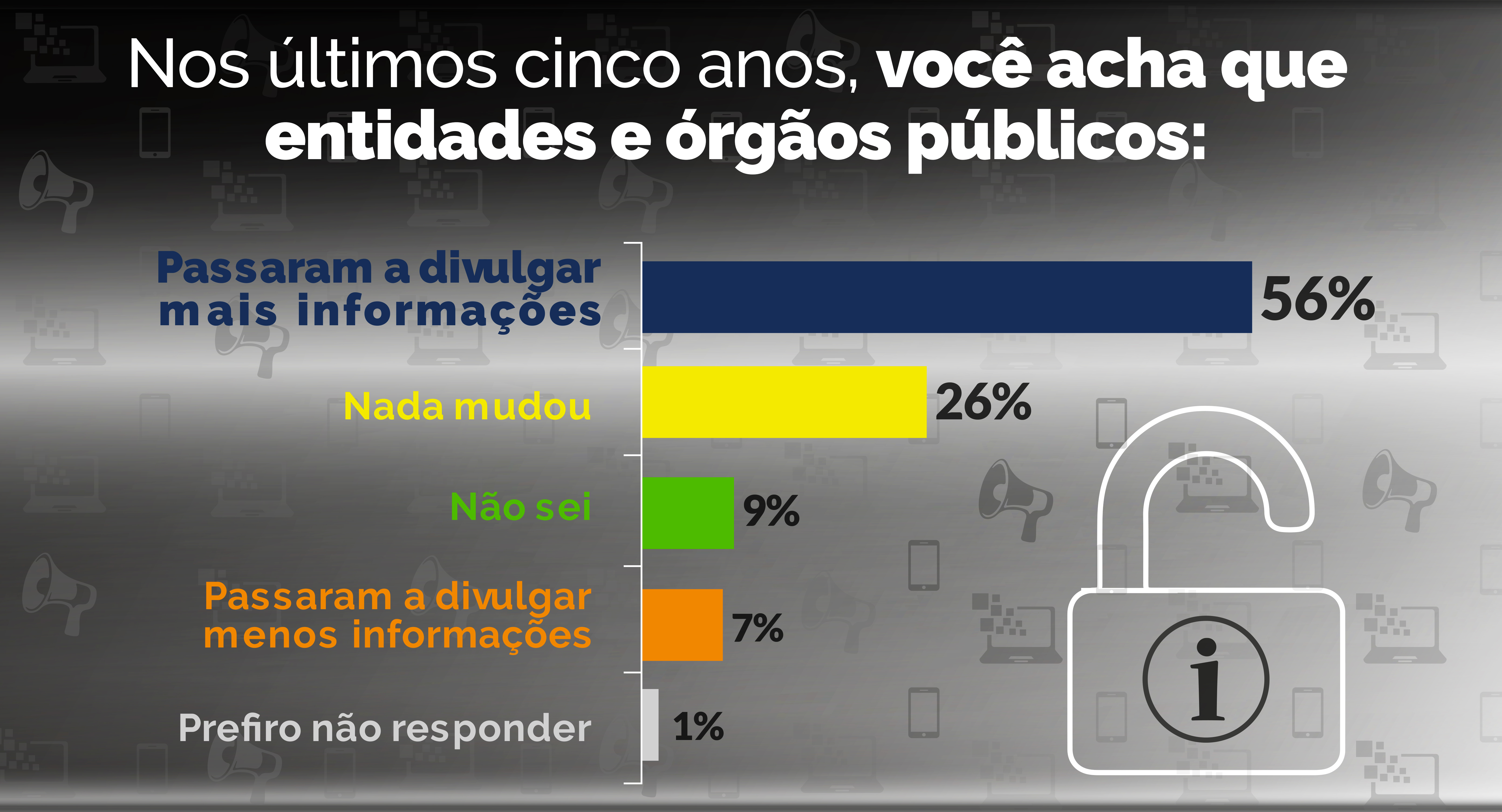 Em comemoração aos cinco anos da LAI, o Instituto DataSenado realizou enquete para conhecer a opinião de cidadãos sobre a lei. A maioria dos participantes já ouviu falar da LAI e, mais da metade, acredita que nos últimos cinco anos as entidades e órgãos públicos passaram a divulgar mais informações.