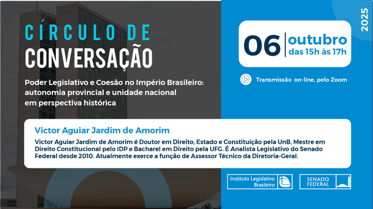 Este círculo de conversação visa promover uma reflexão sobre o tema desenvolvido pelo autor em sua pesquisa de doutorado: Estado Unitário e Descentralização Política no Império Brasileiro – assunto de alta relevância social diante das tensões entre centralização e autonomia política e da necessidade de compreender os impactos desse arranjo institucional na formação do Estado brasileiro.