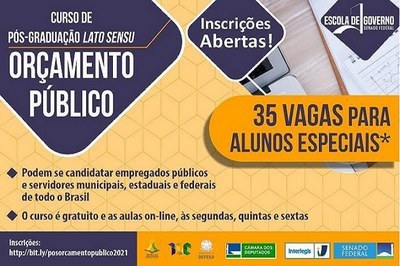 - Escola de Governo do Senado abre inscrições para pós-graduação em Orçamento Público (09/02/2021);