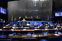 Notícias da Presidência 03.09.24 / 21:02 Senado aprova MP que destina de R$ 12,2 bilhões para o Rio Grande do Sul O Plenário aprovou também o projeto de lei que permite à União doar materiais e equipamentos a estados e municípios para o enfrentamento de emergência fitossanitária ou zoossanitária. 27.08.24 / 18:52 Senado aprova projeto que prevê a produção de remédios para doenças determinadas socialmente O PL 5.331/2023 ainda prevê parcerias entre o poder público e laboratórios internacionais a fim de transferir tecnologias de produção dos princípios ativos para os laboratórios brasileiros. 21.08.24 / 17:54 Senado Federal aprova projeto que mantém as competências dos juizados especiais De acordo com o texto, permanece em vigor a Lei 9.009, de 1995, que atribui aos juizados a conciliação, processo e julgamento de ações cíveis de menor complexidade e de valor até 40 salários mínimos. 20.08.24 / 22:32 Senado aprova transição para a reoneração gradual da folha de pagamento de setores da economia e de municípios O texto aprovado determina ainda a redução, de 20% para 8%, da alíquota da contribuição previdenciária sobre a folha dos municípios com população de até 142.632 habitantes. 15.08.24 / 16:12 Senado Federal aprova projeto que estabelece norma geral para concursos públicos A proposta engloba todas as fases do processo seletivo, desde a autorização e planejamento até a execução e avaliação, com o objetivo de promover maior transparência e uniformidade nos concursos realizados em âmbito federal. 14.08.24 / 23:25 Senado aprova projeto sobre renegociação das dívidas dos Estados O Plenário da Casa aprovou projeto de lei complementar que institui o Programa de Pleno Pagamento de Dívidas dos Estados (Propag), destinado a promover a revisão dos termos das dívidas dos Estados e do Distrito Federal com a União. 13.08.24 / 21:20 Senado Federal aprova criação do Estatuto da Segurança Privada O projeto de lei do Senado (PLS 135/2010) estabelece regras para o setor, como a formação de profissionais e uso de armas e outros equipamentos controlados em estabelecimentos públicos e privados e espaços públicos. 08.08.24 / 13:47 Senado Federal debate projeto que regulamenta a exploração de jogos e apostas Conduzido pelo presidente da Casa, senador Rodrigo Pacheco (PSD-MG), o encontro reuniu no Plenário senadores e especialistas sobre o tema, que discutiram os principais pontos do texto que está em análise no Congresso há mais de 30 anos. 07.08.24 / 19:45 Plenário do Senado Federal aprova acordos internacionais com o Catar e com Ruanda Sob a condução do presidente do Senado, Rodrigo Pacheco (PSD-MG), o Plenário aprovou, nesta quarta-feira (7), dois projetos de decreto legislativo (PDL) que celebram acordos internacionais entre o Brasil e os países do Catar e de Ruanda. 06.08.24 / 18:59 Senado aprova critérios para a concessão do título de “Capital Nacional” aos municípios O projeto de lei, de autoria da Câmara dos Deputados, estabelece que a outorga do título deve ser precedida de uma manifestação oficial do Poder Legislativo municipal, com a comprovação documental de que o município se destaca na atividade proposta por pelo menos dez anos consecutivos. « ‹ 13 14 15 16 17 › »