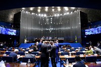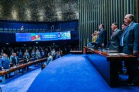 Notícias da Presidência 12.06.24 / 19:22 Senado aprova medidas emergenciais para o turismo e a cultura do Rio Grande do Sul O texto estabelece obrigações dos empresários e prestadores de serviço com consumidores e profissionais previamente contratados, como a remarcação dos serviços, reservas e eventos. 11.06.24 / 19:56 Senado Federal aprova criação da Política Nacional de Assistência Estudantil Entre os benefícios, estão o Programa Bolsa Permanência (PBP), que será pago a estudantes no valor de R$ 700 (graduação) e de R$ 300 (ensino técnico médio). 06.06.24 / 07:40 Senado aprova programa de incentivo à pesquisa e produção de veículos menos poluentes Ao longo de cinco anos, até 2028, serão destinados R$ 19,3 bilhões para investimentos em descarbonização de novos veículos. 04.06.24 / 20:00 Senado aprova novas regras para o financiamento do setor cultural nos estados e municípios O PL 3.905/2021 regulamenta os processos de financiamento do setor cultural nos níveis federal, estadual e municipal, com o objetivo de promover a transparência, a eficiência e a democratização do acesso aos recursos culturais. 29.05.24 / 16:29 Congresso Nacional aprova incremento de R$ 3,9 bilhões para o orçamento federal Parlamentares aprovaram, nesta quarta-feira (29), em sessão conjunta, oito projetos de lei que liberam créditos suplementares, ao Orçamento de 2024, no valor de R$ 3,9 bilhões. 28.05.24 / 13:49 Congresso Nacional celebra 200 anos de relação diplomática Brasil - Estados Unidos em sessão solene Na abertura, Pacheco destacou a importância do relacionamento entre os países e afirmou ser “imprescindível” que as duas nações continuem a parceria de trabalho construída em dois séculos. 27.05.24 / 13:14 Rodrigo Pacheco afirma que “o Congresso Nacional estará permanentemente ao lado” do Rio Grande do Sul Por iniciativa de Pacheco, uma comissão de senadores foi criada para centralizar os pedidos de projetos de lei e emendas constitucionais de interesse do Rio Grande Sul após as enchentes. 22.05.24 / 20:14 Senado aprova prorrogação e ampliação da política de cotas para concursos públicos De acordo com o texto, a iniciativa se justifica pela necessidade de fornecer as medidas que visem à promoção da igualdade no setor público, como previsto na Constituição Federal, e como dever de consciência no estado democrático de direito. 21.05.24 / 20:45 Senado Federal aprova criação de programa de vacinação em escolas públicas O PL 826/2019 visa articular as escolas de educação básica e os serviços de saúde, por meio de estratégias e campanhas para o aumento da cobertura vacinal dos diferentes imunizantes contemplados no Programa Nacional de Imunizações (PNI). 15.05.24 / 20:26 Pacheco conduz sessão que aprova suspensão do pagamento da dívida do Rio Grande do Sul com a União A iniciativa visa permitir o redirecionamento do dinheiro para ações de recuperação e reconstrução dos municípios gaúchos atingidos por chuvas intensas. A matéria segue à sanção presidencial. « ‹ 15 16 17 18 19 › »