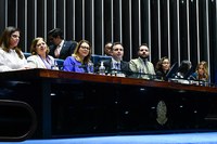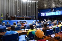 Notícias da Presidência 29.08.23 / 19:38 Senado aprova projeto de incremento das ações da União perante eventos de calamidade pública O Senado aprovou PLP 257/2019 que tem como objetivo aperfeiçoar os meios técnicos e financeiros de resposta da União a calamidades públicas nos estados e municípios. 29.08.23 / 17:18 Rodrigo Pacheco defende consenso pela reforma tributária em encontro com governadores no Senado O plenário do Senado Federal recebeu governadores e vice-governadores em uma sessão especial para discussão sobre a reforma tributária, proposta que tramita no Congresso Nacional. 24.08.23 / 14:11 Senado aprova MP que definiu valor do salário mínimo em R$ 1.320 O aumento foi de 2,8% em relação ao valor anterior, que era de R$ 1.302. A matéria foi aprovada em forma de projeto de lei de conversão (PLV 15/2023), e segue à sanção presidencial. 23.08.23 / 19:40 Senado aprova projeto que inclui proteção de crianças na formação de profissionais da educação O PL 5.016/2019 tem como objetivo identificar possíveis casos de maus tratos e violência sexual cometidos contra estudantes. O projeto segue para a sanção 22.08.23 / 18:39 Senado aprova atualização do Código Penal Militar (CPM) Em sessão conduzida pelo presidente do Senado, Rodrigo Pacheco (PSD-MG), o Plenário, nesta terça-feira (22), aprovou projeto de lei que prevê a atualização do Código Penal Militar (CPM) de acordo com a Constituição e a lei dos crimes hediondos. 17.08.23 / 13:45 Senado realiza sessão especial para debate sobre legalização do porte de drogas para consumo pessoal O presidente da Casa, Rodrigo Pacheco (PSD-MG), afirmou que o Legislativo brasileiro é o foro adequado para a discussão do tema. 16.08.23 / 19:07 Senado aprova auxílio-aluguel para mulher vítima de violência doméstica A iniciativa altera a Lei Maria da Penha (Lei 11.340, de 2006) com o objetivo de proteger e amparar as vítimas em situação de vulnerabilidade social e econômica. 15.08.23 / 19:07 Senado aprova política de incentivo ao empreendedorismo do jovem no campo O PL 2.208/2022 tem como objetivo estimular ações voltadas à população jovem, com idades entre 15 e 29 anos e filhos de agricultores, para a obtenção de incentivos que proporcionem o fomento de suas habilidades e trajetórias profissionais baseadas nas zonas rurais. 10.08.23 / 17:02 Senado celebra 17 anos da Lei Maria da Penha em sessão especial no Senado Principal instrumento jurídico brasileiro de combate à violência doméstica, a norma foi batizada com o nome da farmacêutica Maria da Penha Fernandes, que ficou paraplégica após duas tentativas de feminicídio cometidas pelo então marido. 10.08.23 / 14:15 Presidente do Banco Central participa de sessão para prestação de contas na condução da política monetária Nesta quinta-feira (10), o presidente do Banco Central do Brasil, Roberto Campos Neto, apresentou aos senadores um balanço das atividades do órgão sobre inflação e estabilidade financeira referente ao primeiro semestre. « ‹ 22 23 24 25 26 › »