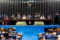 Notícias da Presidência 14.03.23 / 19:48 Senado garante validade indeterminada para laudos de deficiência permanente Brasília – O presidente do Senado Rodrigo Pacheco (PSD-MG) conduziu, nesta terça-feira (14), sessão deliberativa na qual foi aprovado projeto de lei que estabelece validade indeterminada para laudos que atestem deficiência permanente. 09.03.23 / 13:20 Senado aprova medidas para evitar o desperdício de água e estimular o seu reaproveitamento A matéria, que altera a Lei do Saneamento Básico, ainda prevê que as empresas realizem vistorias nos sistemas de água e esgoto para evitar vazamentos e perdas, corrigir falhas e combater as ligações irregulares. 08.03.23 / 13:53 Senado presta homenagem às mulheres com a entrega do diploma Bertha Lutz O Senado realizou, nesta quarta-feira (8), sessão especial para comemorar o Dia Internacional da Mulher, em cerimônia conduzida pelo presidente Rodrigo Pacheco (PSD-MG). 07.03.23 / 19:19 Senado garante criação de delegacias especializadas de atendimento à mulher O PL 781/2020 cria a Delegacia Especializada de Atendimento à Mulher (Deam), com recursos do Fundo Nacional de Segurança Pública (FNSP) destinados aos estados. As unidades vão funcionar todos os dias da semana, incluindo feriados, 24 horas por dia. 02.03.23 / 09:35 Senado entrega “Comenda de Incentivo à Cultura Luís da Câmara Cascudo” em sessão solene Instituída em 2018, a comenda é destinada a reconhecer a participação de personalidades, instituições e grupos que tenham contribuído com o fortalecimento da cultura, do folclore e dos saberes tradicionais no Brasil. 02.03.23 / 09:15 Congresso Nacional homenageia o centenário da morte do patrono do Senado Rui Barbosa Pacheco propôs a realização da sessão solene dos 100 anos da morte de Barbosa, considerado uma das maiores personalidades da história do Brasil, que exerceu as profissões de escritor, jurista, advogado, político, diplomata e jornalista. 01.03.23 / 11:22 Senado aprova MP que garante benefício fiscal para o setor do turismo A medida contribui para a recuperação de empresas do setor do turismo, principalmente agências, operadoras e cruzeiros marítimos, que estão retomando as atividades após a pandemia da Covid-19. 08.02.23 / 19:21 Senado aprova comissão externa para acompanhar crise humanitária na Terra Indígena Yanomami O plenário do Senado aprovou, nesta quarta-feira (8), a criação de uma comissão externa de senadores para acompanhar, pelos próximos 120 dias, a crise humanitária que atingiu o povo Yanomami, em Roraima. 03.02.23 / 12:25 Congresso Nacional inaugura o ano Legislativo em sessão solene Pacheco afirmou que o Congresso está comprometido em trabalhar em prol das grandes questões nacionais de maneira independente, porém harmônica, com o Poder Executivo, com o Poder Judiciário e com as instituições brasileiras. 02.02.23 / 16:16 Após eleição do presidente do Senado, integrantes da Mesa são eleitos para o biênio Sob a condução do presidente do Senado, Rodrigo Pacheco (PSD-MG), os senadores elegeram, nesta quinta-feira (2), os demais membros da Mesa da Casa para os próximos dois anos. « ‹ 27 28 29 30 31 › »