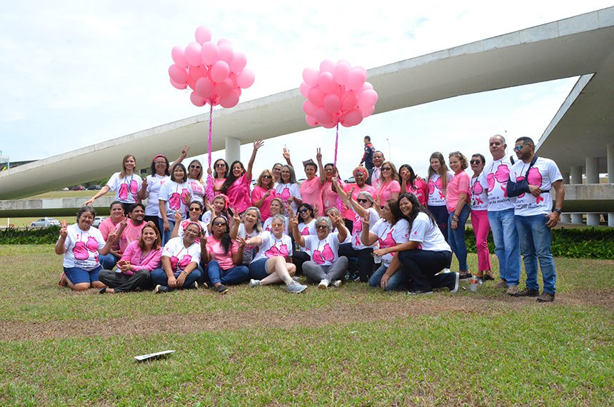 Laço humano em frente ao Congresso pede mais prevenção ao câncer de mama