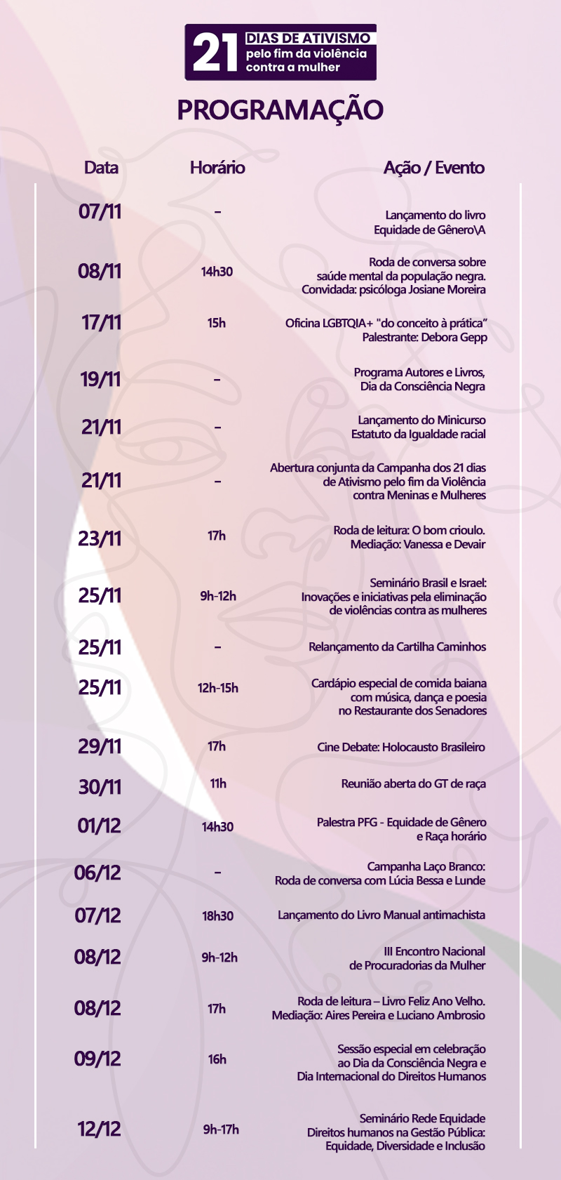 21 dias de ativismo programacao 2022 https://www12.senado.leg.br/institucional/procuradoria/imagens/21-dias-de-ativismo-programacao-2022/view https://www12.senado.leg.br/institucional/logo.png 21 dias de ativismo programacao 2022 Clique para ver a imagem no tamanho completo… Tamanho: 557KB