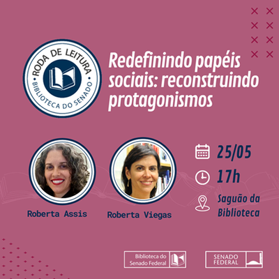 Dia 25/05, às 17h, Roberta Assis e Roberta Viegas conduzirão a Roda de Leitura no Saguão da Biblioteca do Senado Federal.