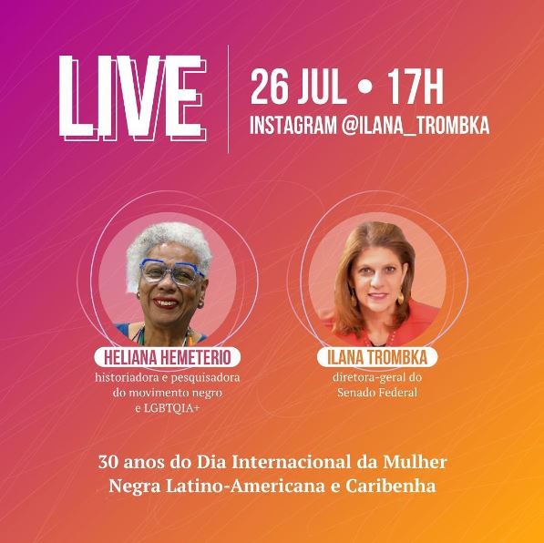 A diretora-geral do Senado Federal fará a live no Instagram, dia 26/07, às 17h
