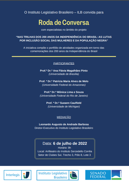 A Roda de Conversa "Nas trilhas dos 200 anos da Independência do Brasil: as lutas por inclusão social das mulheres e da população negra" será dia 06/07, às 9h. Participe!