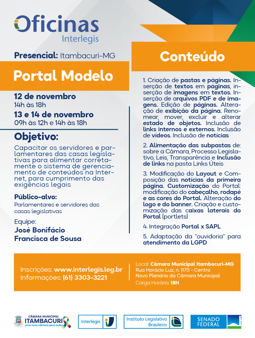 Oficina de Portal Modelo em Câmara Municipal de Itambacuri (MG) - 14/2025