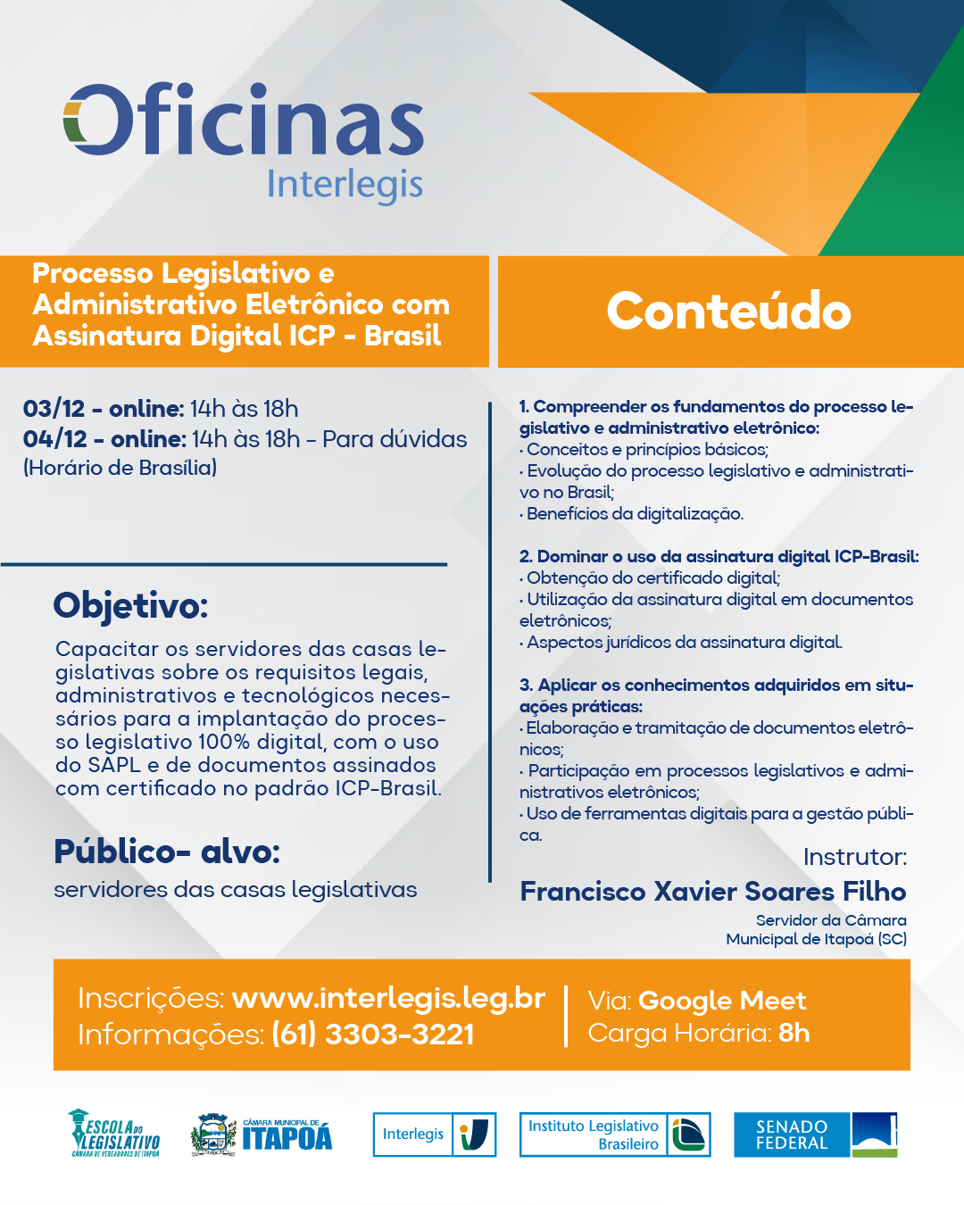 Oficina Interlegis de Processo Legislativo e Administrativo Eletrônico com Assinatura Digital - 02/2025