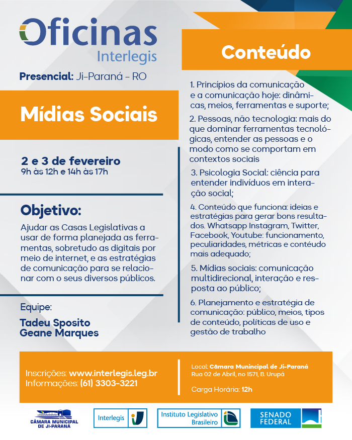 Oficina de Mídias Sociais (Comunicação Integrada) em Câmara Municipal de Ji-Paraná (RO) - 01/2026