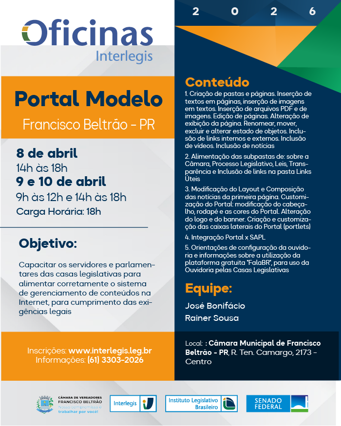 Oficina de Portal Modelo em Câmara Municipal de Francisco Beltrão (PR) - 05/2026