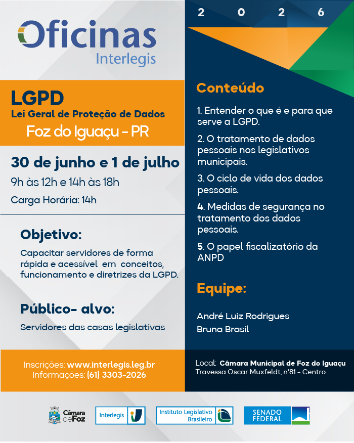 Oficina de LGPD - Lei Geral de Proteção de Dados em Câmara Municipal de Foz do Iguaçu (PR) - 07/2026