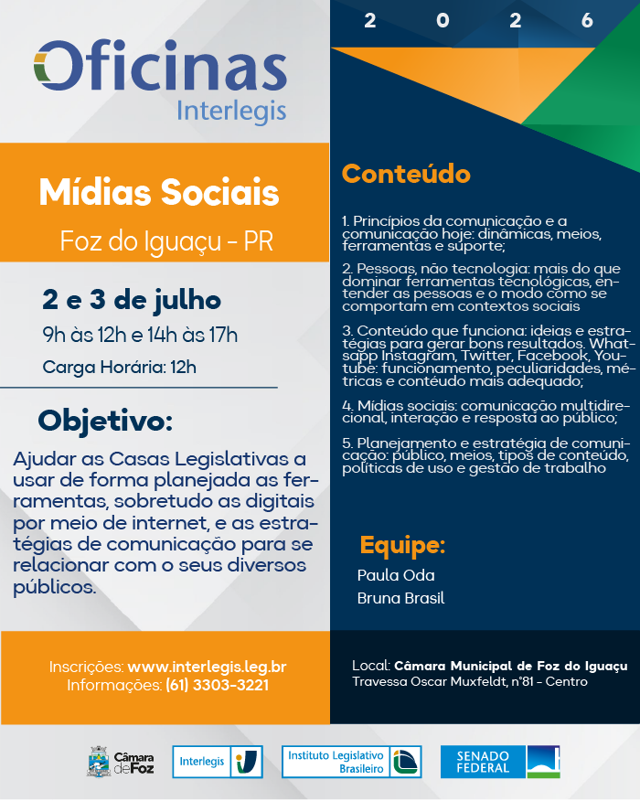 Oficina de Mídias Sociais (Comunicação Integrada) em Câmara Municipal de Foz do Iguaçu (PR) - 06/2026