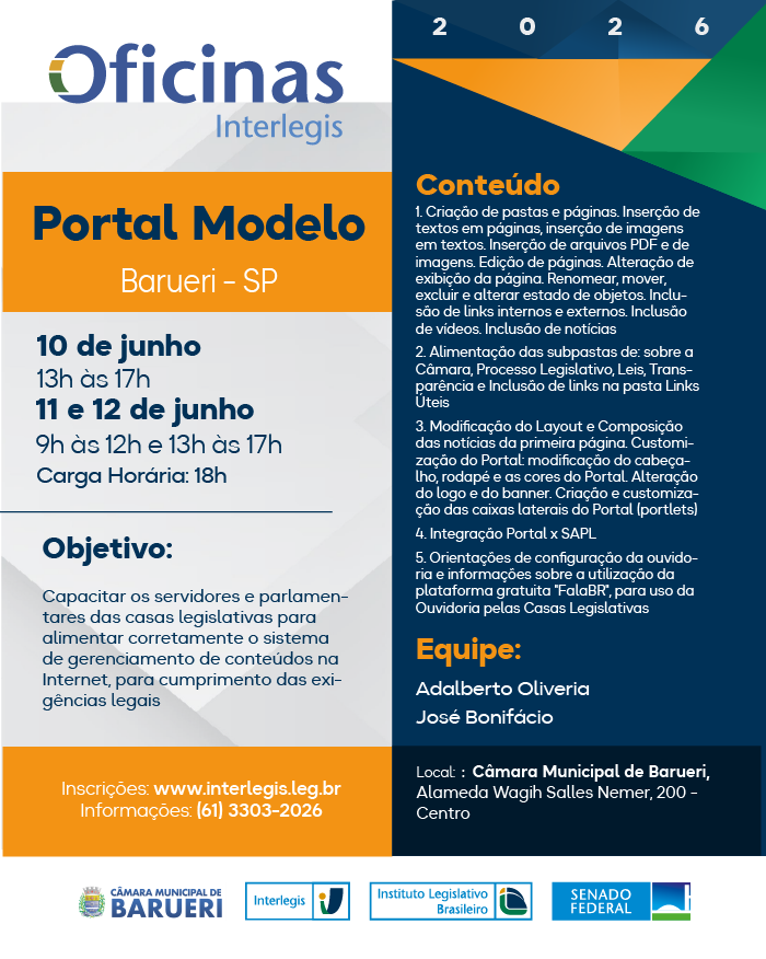 Oficina de Portal Modelo em Câmara Municipal de Barueri (SP) - 07/2026