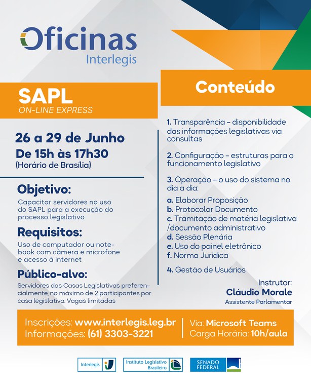 - https://www12.senado.leg.br/interlegis/eventos/2023/oficina-de-sistema-de-apoio-ao-processo-legislativo-turma-05-2023-on-line-express