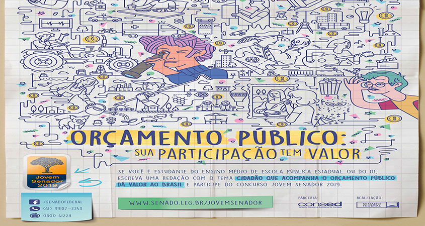 Dentre as competências privativas do Senado Federal, conforme art. 52 da Constituição Federal, está a de fiscalizar o desempenho das administrações tributárias da União, dos Estados e do Distrito Federal e dos Municípios. Dessa forma, ciente de seu papel e da importância de conscientizar a população sobre a fiscalização dos gastos públicos, o Senado elegeu a questão orçamentária para aproximar-se ainda mais da sociedade brasileira e despertar nos jovens o interesse pelo acompanhamento das contas públicas.