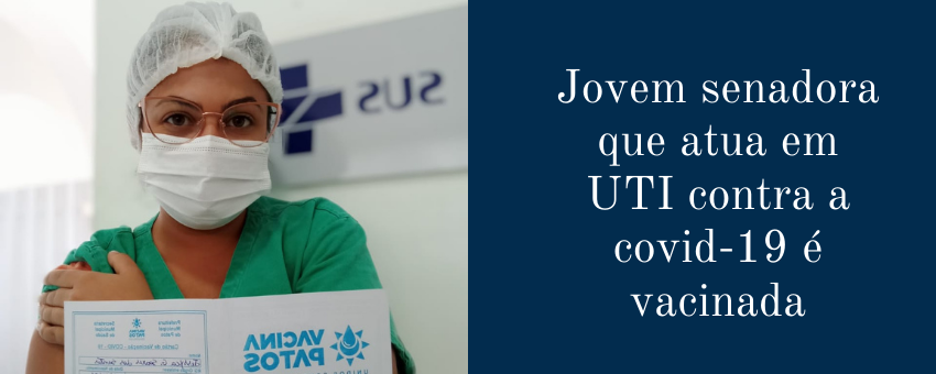 Jovem senadora pelo Rio Grande do Norte em 2012, Jéssyca Gabriela Soares dos Santos é enfermeira formada pela Universidade Federal de Campina Grande (PB) e trabalha desde o início da pandemia na UTI que atende casos de covid-19 no Complexo Hospitalar Regional Deputado Janduhy Carneiro, em Patos (PB). Por lidar diretamente com pacientes que contraíram a doença, Jéssyca foi vacinada na quarta-feira (20). Agora protegida contra o novo coronavírus, ela se sente ainda mais motivada a salvar vidas ameaçadas pela forma grave da doença.