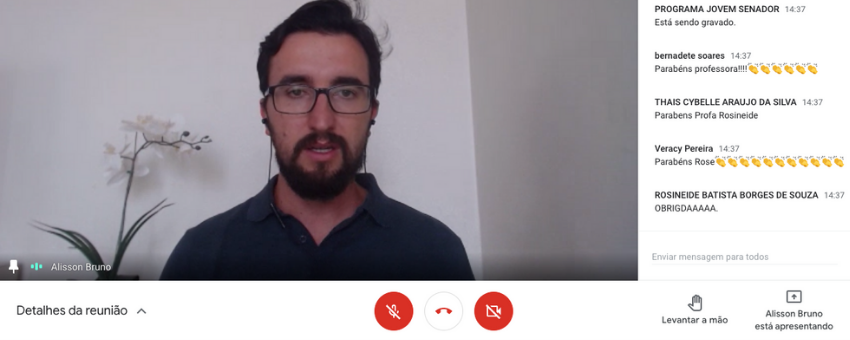 Especialistas em educação que atuam no Jovem Senador no Pará participaram nesta segunda-feira (19) de um encontro virtual com coordenador do Programa e-Cidadania do Senado Federal, Alisson Bruno, que apresentou os recursos da oficina legislativa destinada a professores.