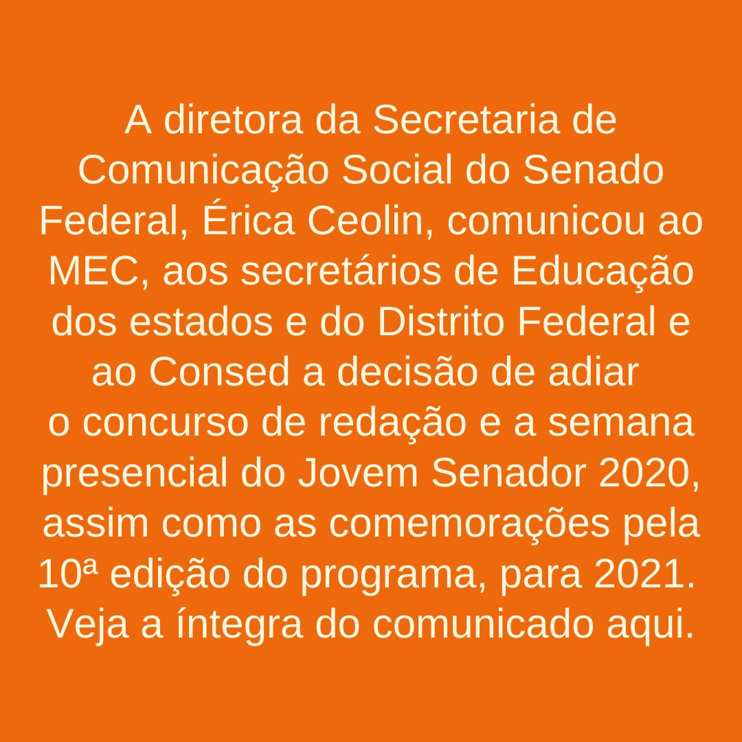 Novidade de 2013: o projeto foi ampliado. Sem idade mínima, puderam participar estudantes com até 19 anos das escolas públicas estaduais e do DF. Mais de 77 mil alunos escreveram redações para tentar uma vaga no Projeto Jovem Senador. Veja o álbum de fotos da edição 2013.