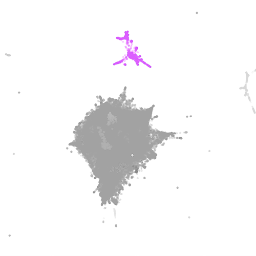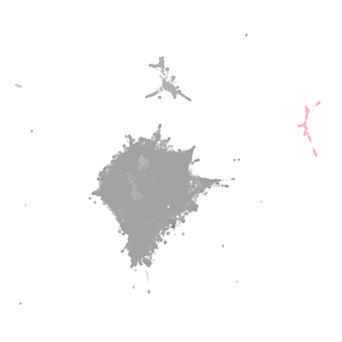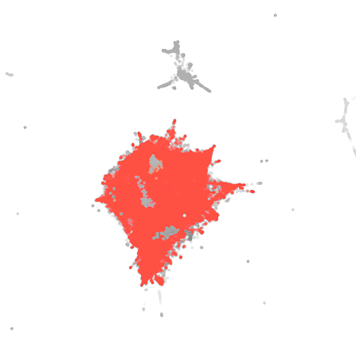 A imagem a seguir, chamada “mapa semântico”, ilustra graficamente os resultados. As cores são categorias temáticas. A distância entre elas reflete o grau de similaridade dos temas.