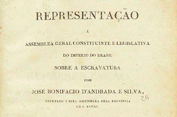 A escravidão apareceu apenas de forma superficial nos debates parlamentares de 1823, sem que se planejasse o fim desse sistema de exploração humana. Bonifácio não teve tempo de apresentar formalmente seu documento abolicionista porque D. Pedro I mandou as tropas cercar a Cadeia Velha e fechar sumariamente a Assembleia Constituinte em 12 de novembro.
