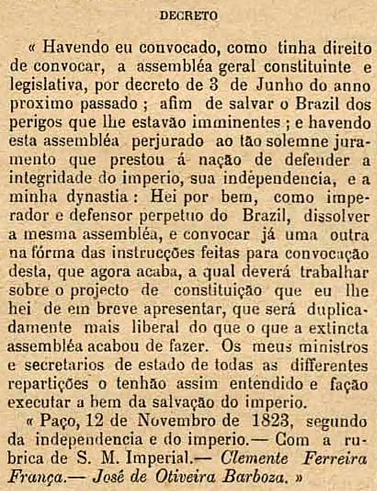 O Parlamento passou quase dois anos e meio fechado. Nesse ínterim, D. Pedro I outorgou a primeira Constituição do Brasil.
