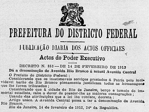 No Rio, o grande ponto de concentração do primeiro Carnaval de 1912 foi a Avenida Central. No segundo Carnaval daquele ano inesquecível, a multidão voltou a se reunir na mesma via, agora rebatizada pela prefeitura de Avenida Rio Branco.
