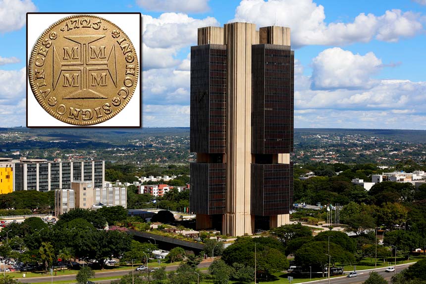 O edifício-sede do Banco Central, em Brasília, foi inaugurado em 1981. A sua icônica arquitetura foi inspirada na Cruz de Cristo gravada no dobrão de 1725, uma moeda dos tempos coloniais.