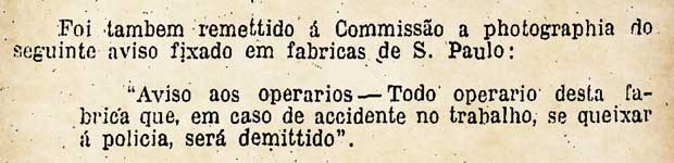 Os industriais ainda pediram que a lei de 1919 fosse mudada para que só houvesse a obrigatoriedade de processo judicial se o trabalhador denunciasse o acidente. Para Gordo, isso abriria espaço para a impunidade dos patrões: