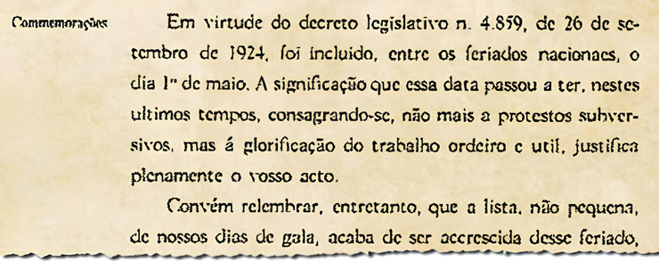 “A significação que essa data passou a ter nestes últimos tempos, consagrando-se não mais a protestos subversivos, mas à glorificação do trabalho ordeiro e útil, justifica plenamente o vosso ato”.